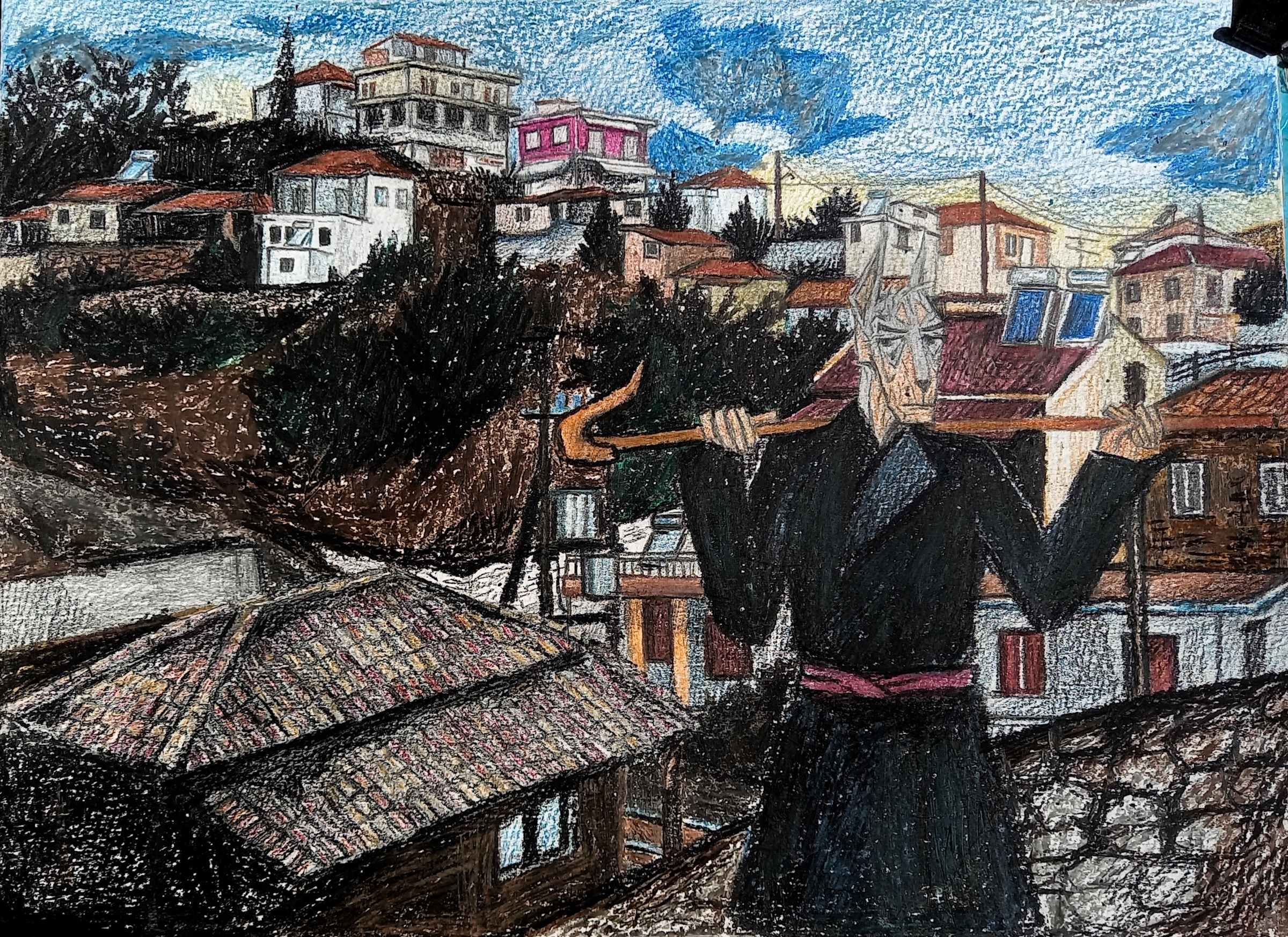 I did some changes to my previous ocs with this. I honestly dont know if i will ever continue my previous comic/universe to be honest and i just play with random ideas for now for fun. For the clothes i took some inspiration from the "Purpuris" costume for Lazaros. It is part of a northern greek christmas custom, where people dress with sheep/goat skin and wear this "mask" that is made of pumpkin (the custom has paganistic roots i believe and relates to celebrations of winter). Now for Kassandra, her headpiece is inspired by a headress worn by greek women from Kappadocia. Yiannis outfit, lastly, is not particularly interesting, he is wearing some form of vestments and probably some golden colored armor inside.